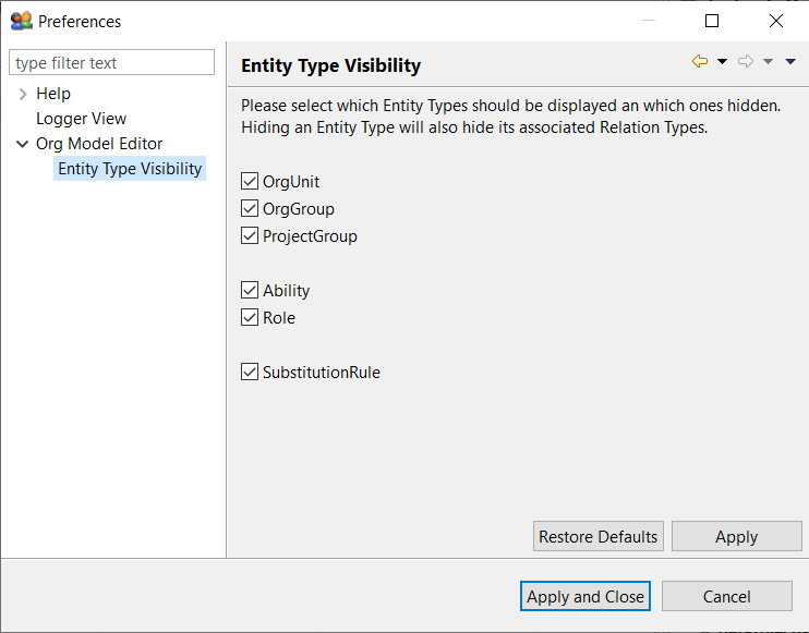 Die Entität SubstitutionsRule können Sie durch Aktivierung unter Window → Preferences → OrgModelEditor → Entity Type Visibility anzeigen lassen.